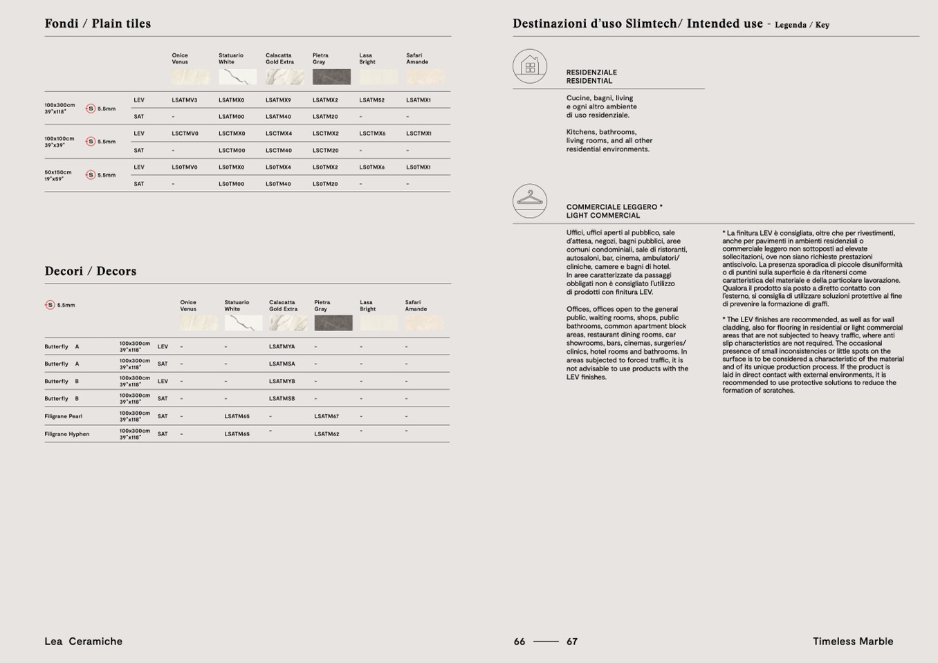 * La finitura LEV è consigliata, oltre che per rivestimenti,