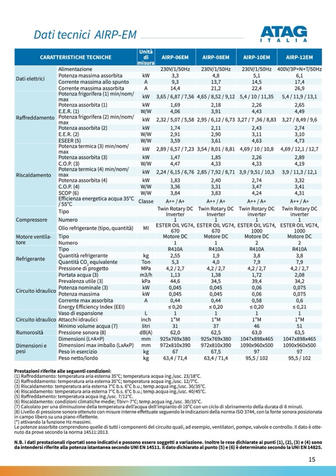 (3) Riscaldamento: temperatura aria esterna 7°C b.s. 6°C b.u.; temp.acqua ing./usc. 30/35°C.