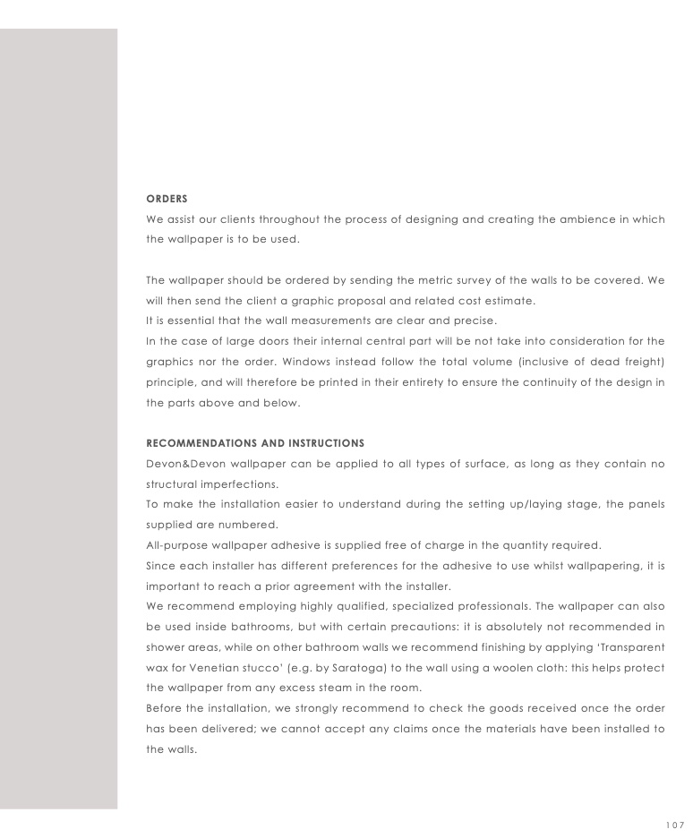 Devon&Devon wallpaper can be applied to all types of surface, as long as they contain no