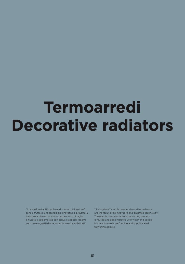 I pannelli radianti in polvere di marmo Livingstone