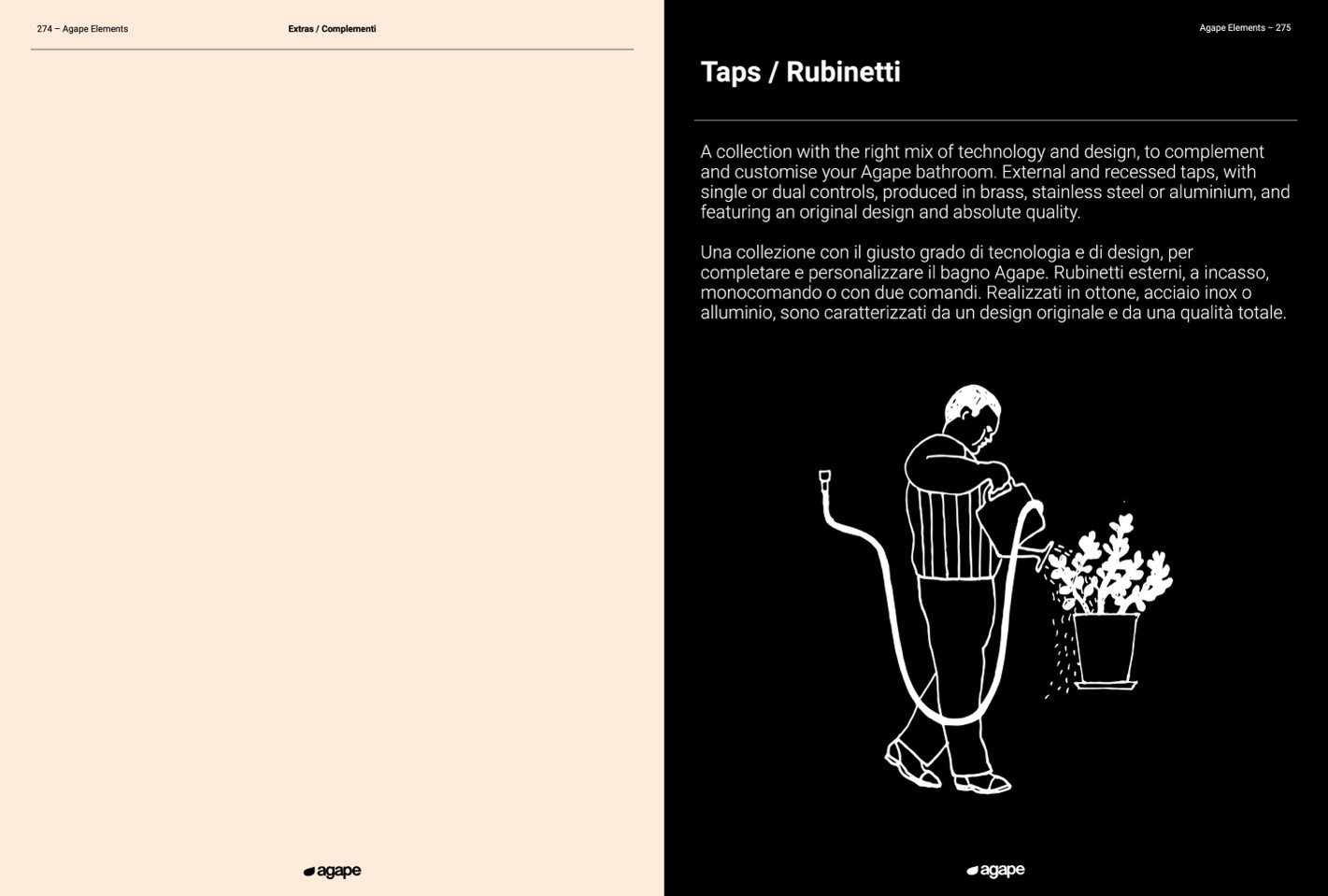 and customise your Agape bathroom. External and recessed taps, with