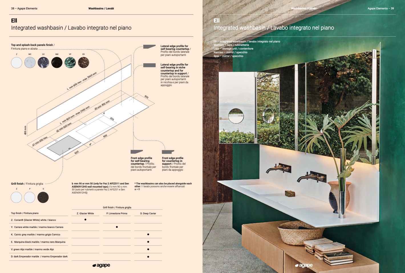 Ell – integrated washbasin / lavabo integrato nel piano