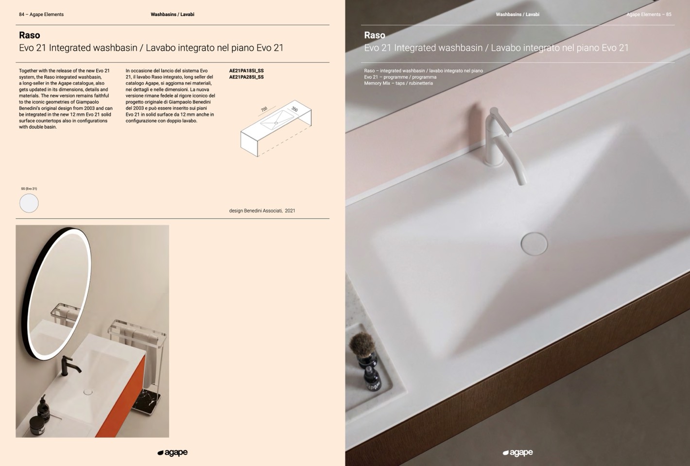 21, il lavabo Raso integrato, long seller del