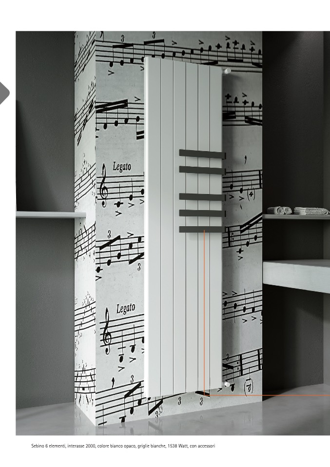 Sebino 6 elementi, interasse 2000, colore bianco opaco, griglie bianche, 1538 Watt, con accessori