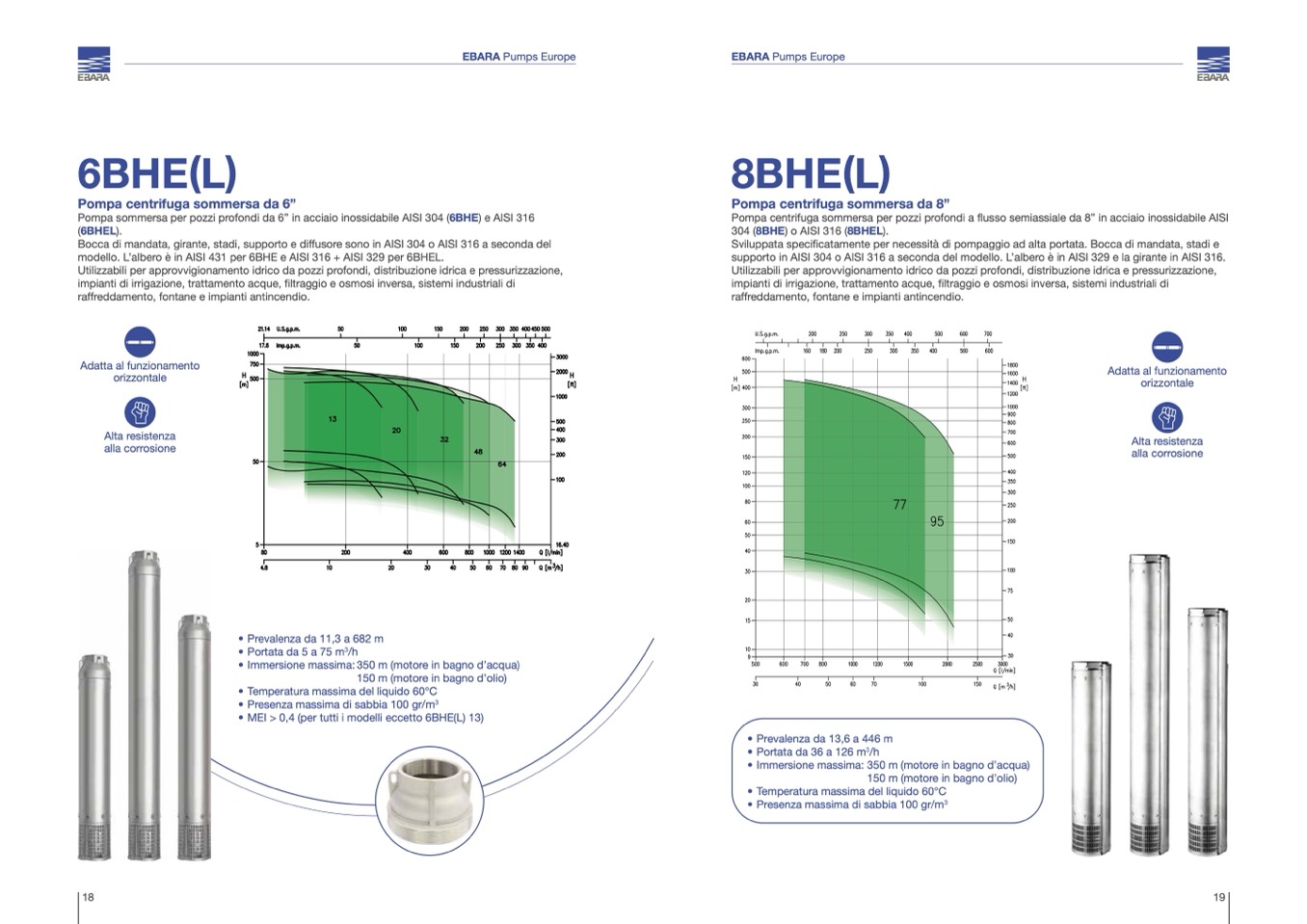 Pompa sommersa per pozzi profondi da 6” in acciaio inossidabile AISI 304 (6BHE) e AISI 316