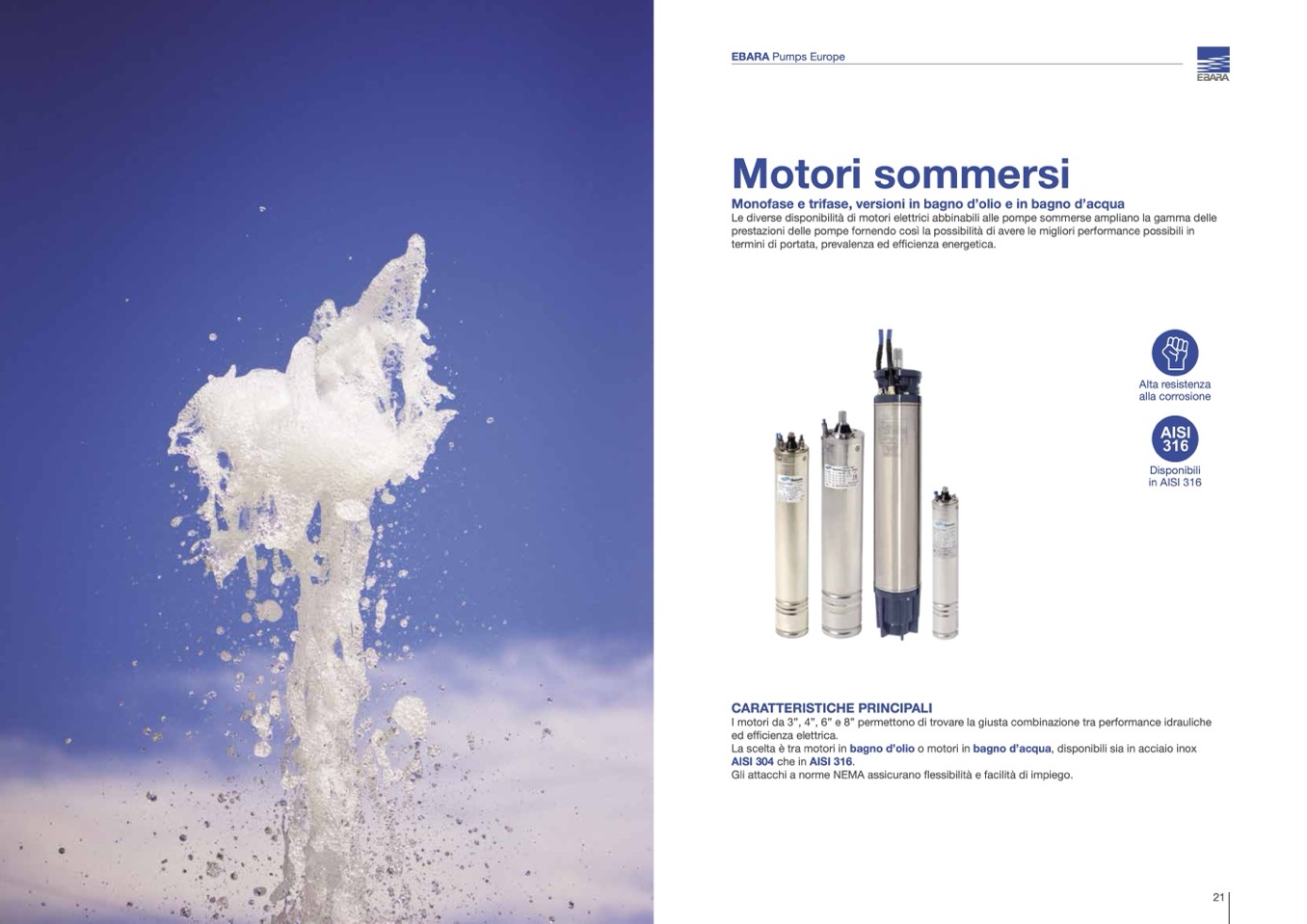 Le diverse disponibilità di motori elettrici abbinabili alle pompe sommerse ampliano la gamma delle
