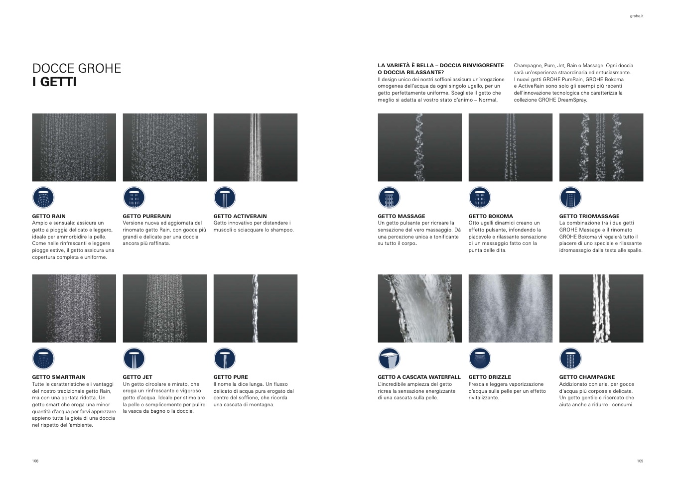 Champagne, Pure, Jet, Rain o Massage. Ogni doccia