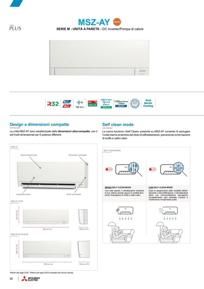 Le unità MSZ-AY sono caratterizzate dalle dimensioni ultra-compatte, con 2