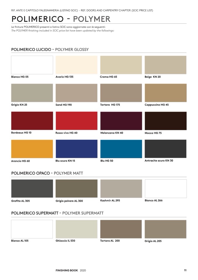Le finiture POLIMERICO presenti a listino SCIC sono aggiornate con le seguenti:
