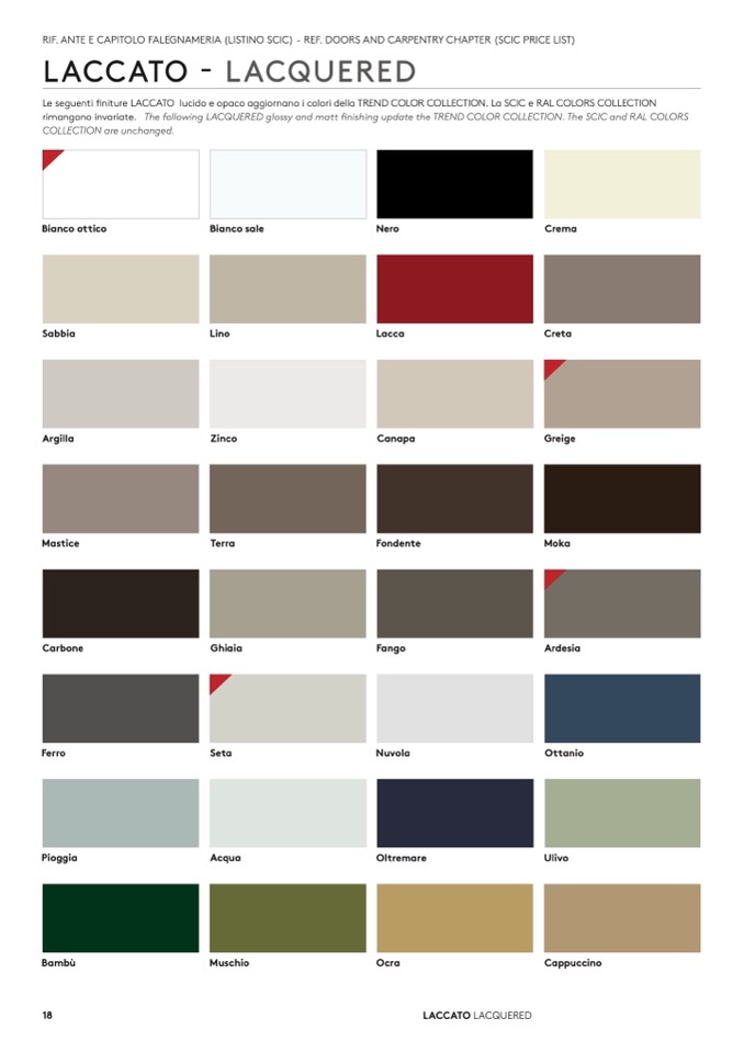 rimangono invariate. The following LACQUERED glossy and matt finishing update the TREND COLOR COLLECTION. The SCIC and RAL COLORS