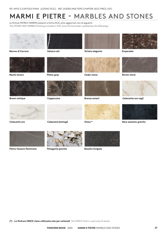 The STONES AND MARBLE finishing included in SCIC price list have been updated by the followings: