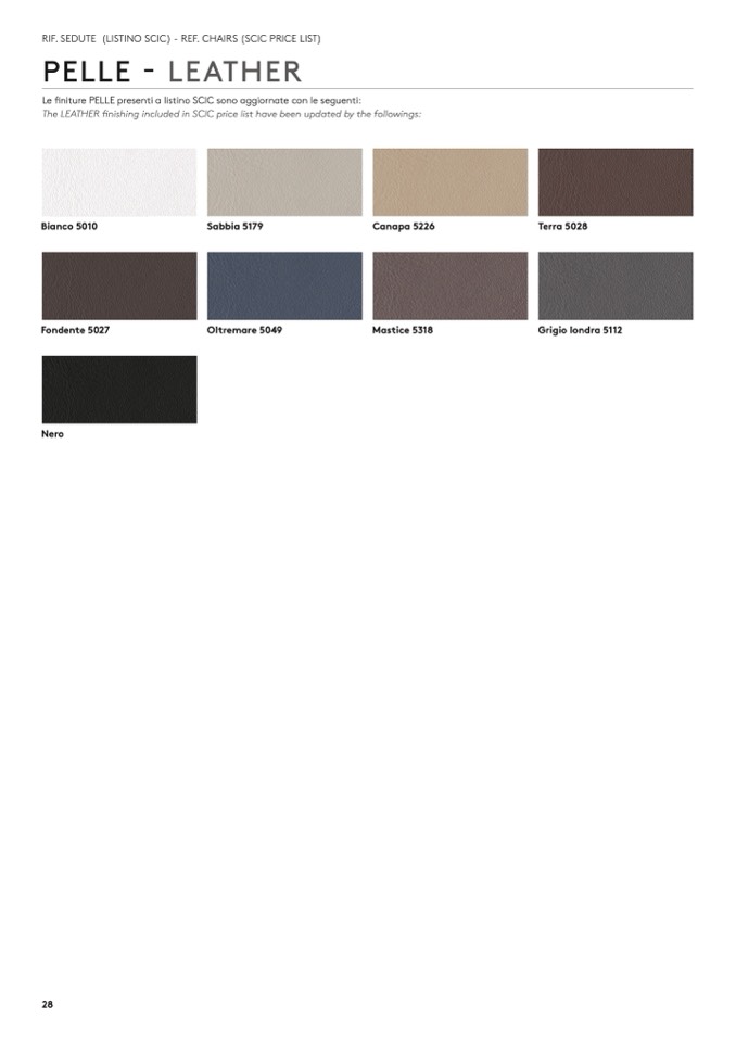 Le finiture PELLE presenti a listino SCIC sono aggiornate con le seguenti: