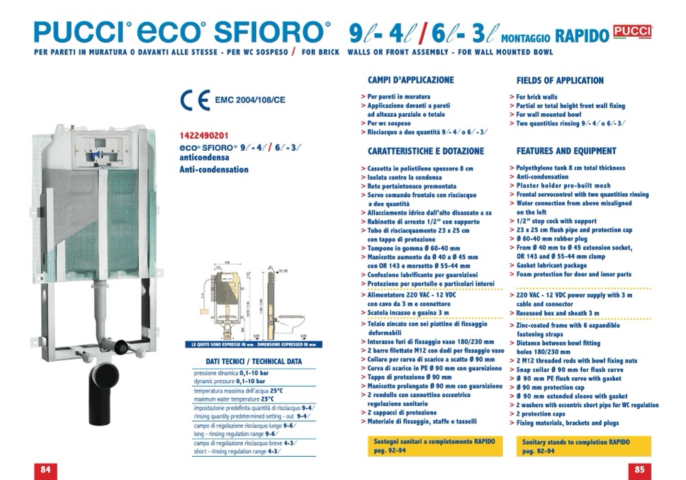 PER PARETI IN MURATURA O DAVANTI ALLE STESSE - PER WC SOSPESO