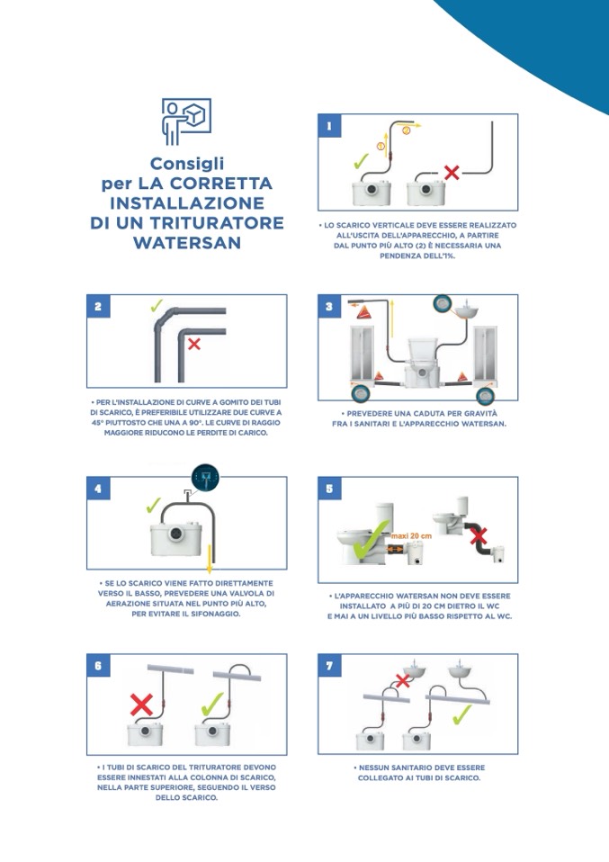 • I TUBI DI SCARICO DEL TRITURATORE DEVONO