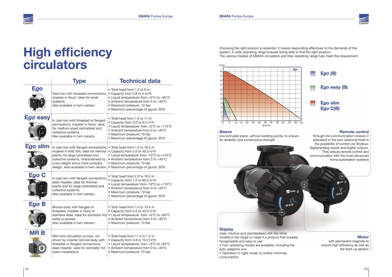 The various models of EBARA circulators and their operating range fully meet this requirement: