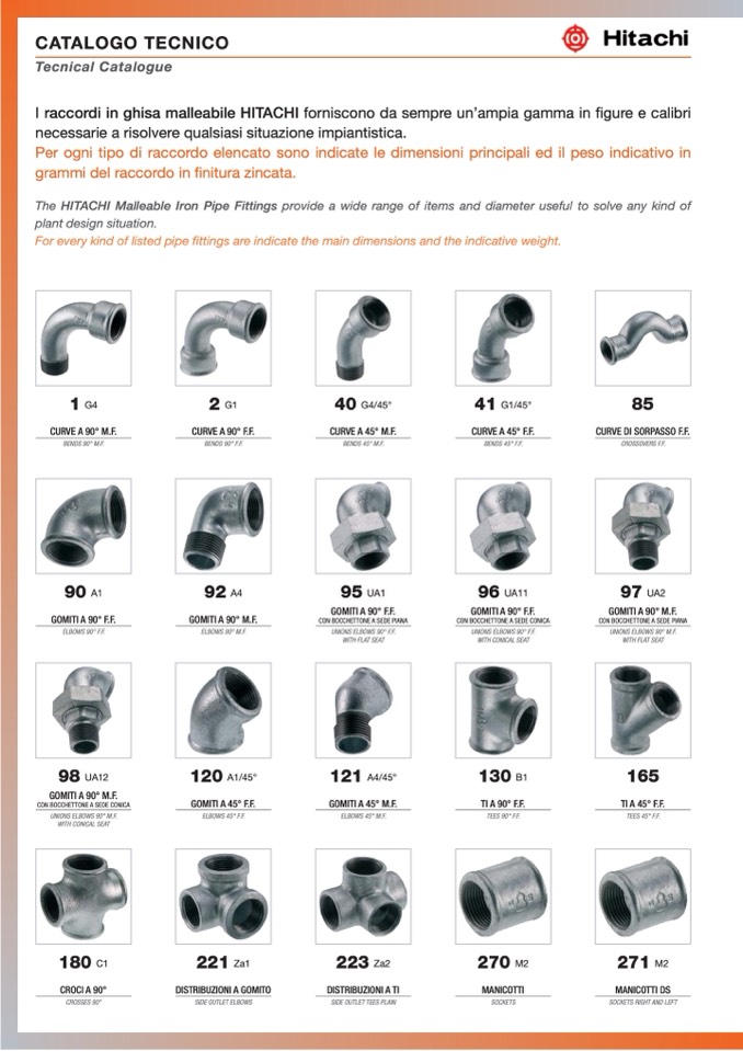 I raccordi in ghisa malleabile HITACHI forniscono da sempre un’ampia gamma in figure e calibri