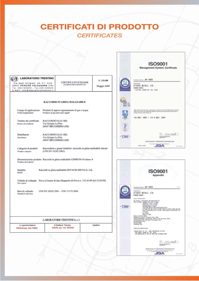 CERTIFICATI DI PRODOTTO