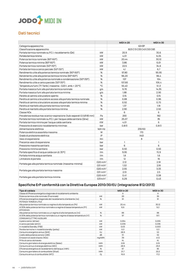 Al 30% della potenza termica nominale e a un regime di bassa temperatura (n1)