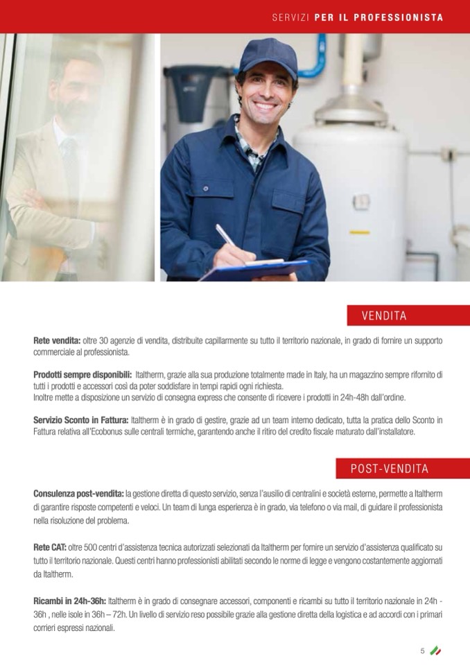 Rete CAT: oltre 500 centri d’assistenza tecnica autorizzati selezionati da Italtherm per fornire un servizio d’assistenza qualificato su
