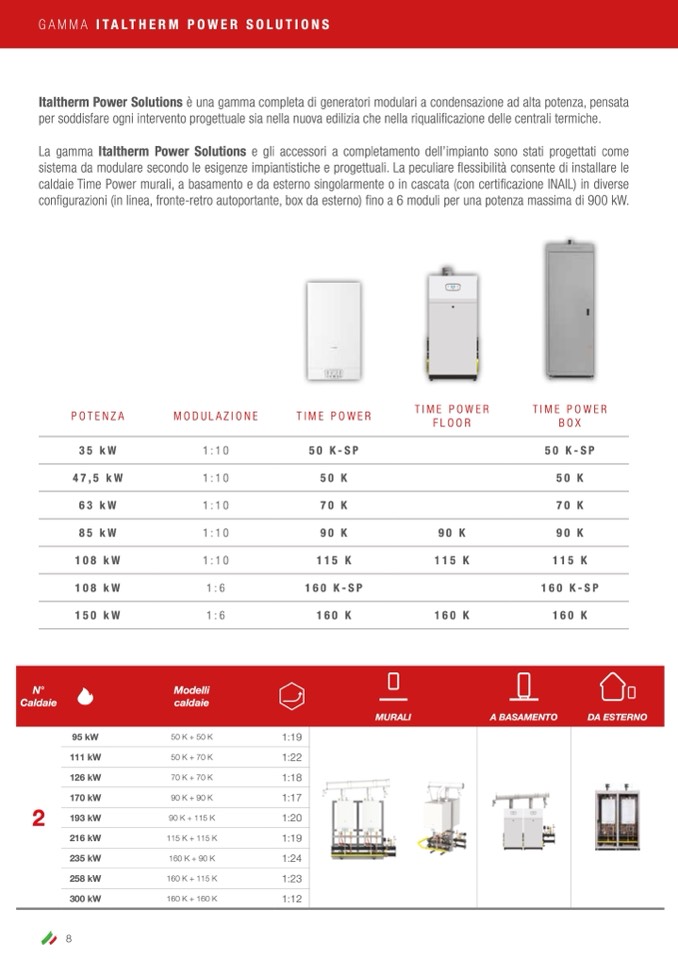 caldaie Time Power murali, a basamento e da esterno singolarmente o in cascata (con certificazione INAIL) in diverse