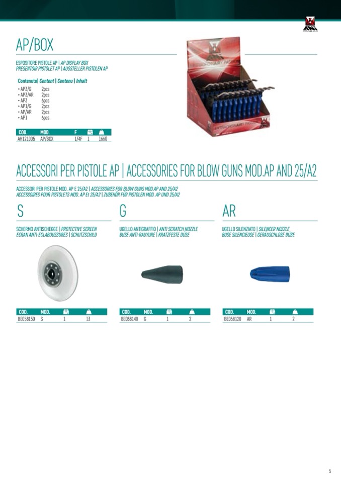 ACCESSORI PER PISTOLE AP | ACCESSORIES FOR BLOW GUNS MOD.AP AND 25/A2