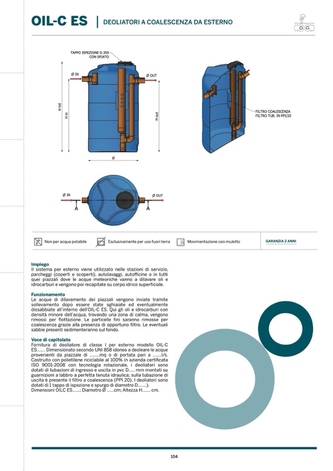 ES....... Dimensionato secondo UNI 858 idoneo a deoleare le acque