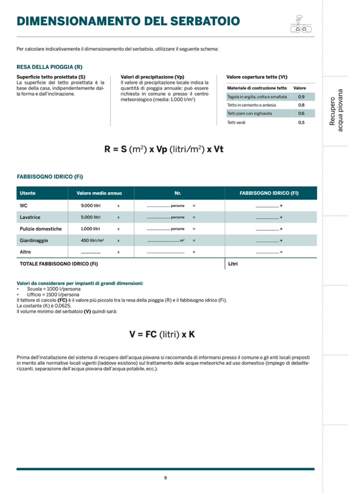 rizzanti, separazione dell’acqua piovana dall’acqua potabile, ecc.).