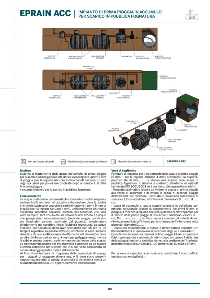 - Pozzetto scolmatore idoneo ad inviare le acque di prima pioggia