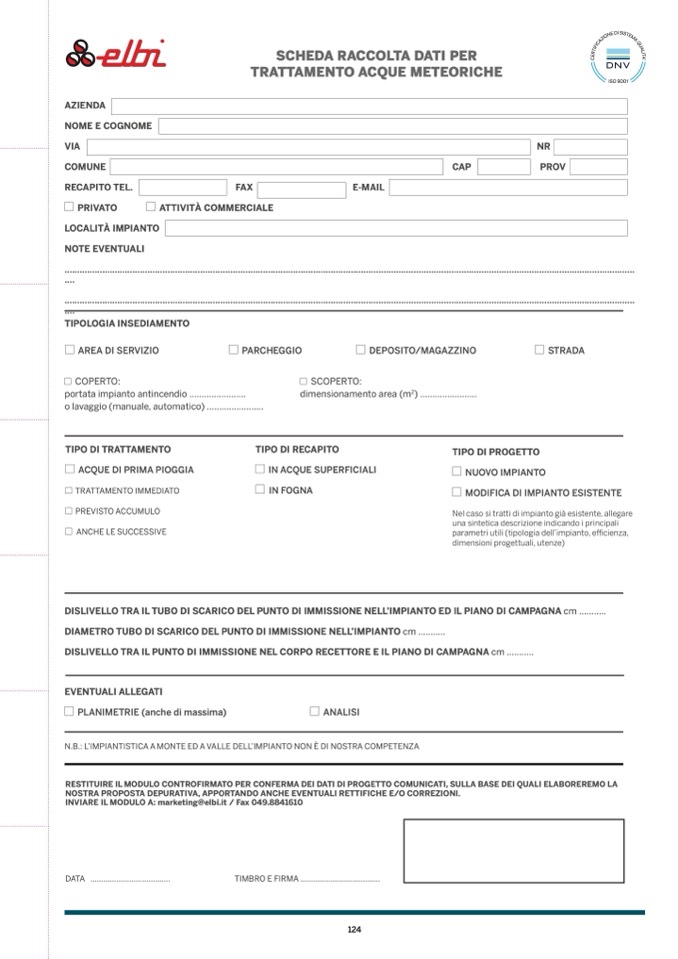INVIARE IL MODULO A: marketing@elbi.it / Fax 049.8841610
