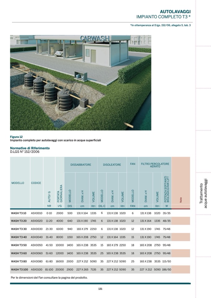 Impianto completo per autolavaggi con scarico in acque superficiali