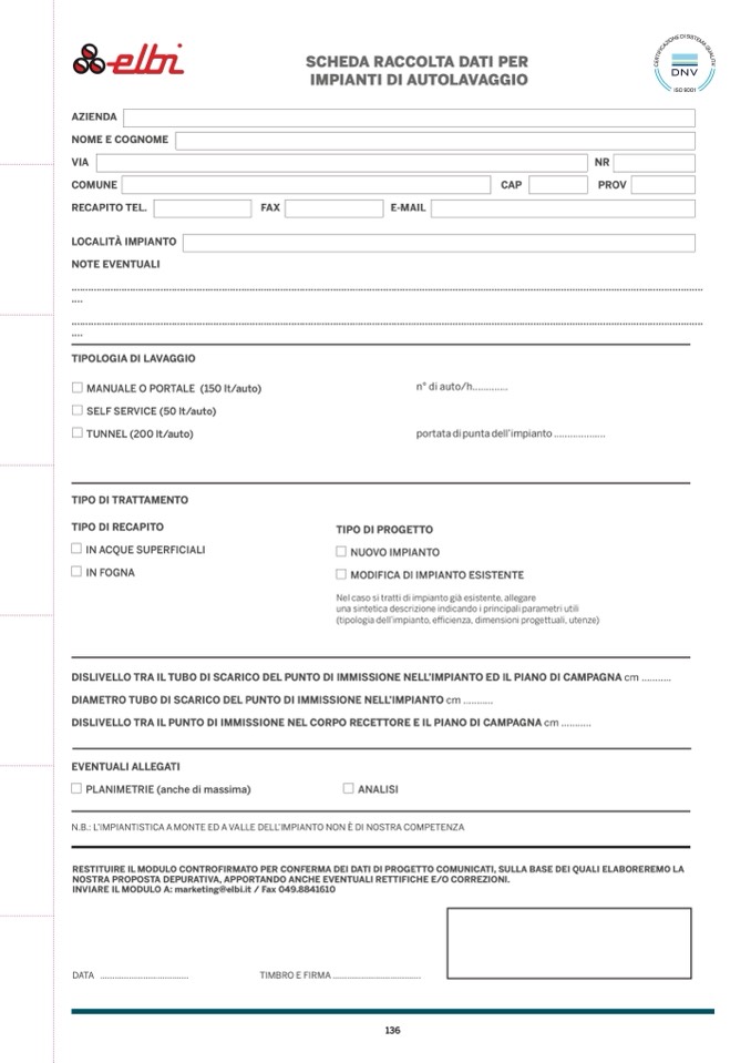 INVIARE IL MODULO A: marketing@elbi.it / Fax 049.8841610