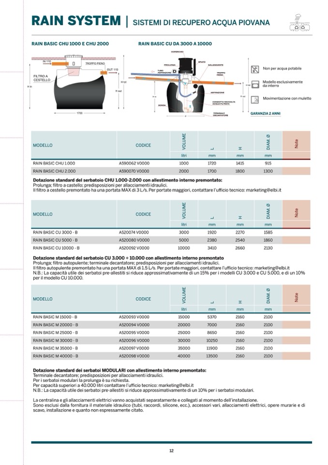 Per capacità superiori a 40.000 litri contattare l’ufficio tecnico: marketing@elbi.it