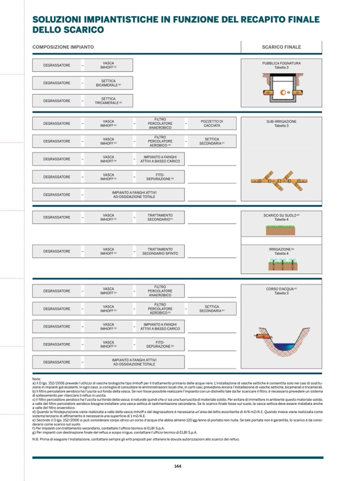 g) Per impianti con destinazione finale del refluo a scopo irriguo, contattare l’ufficio tecnico di ELBI S.p.A.