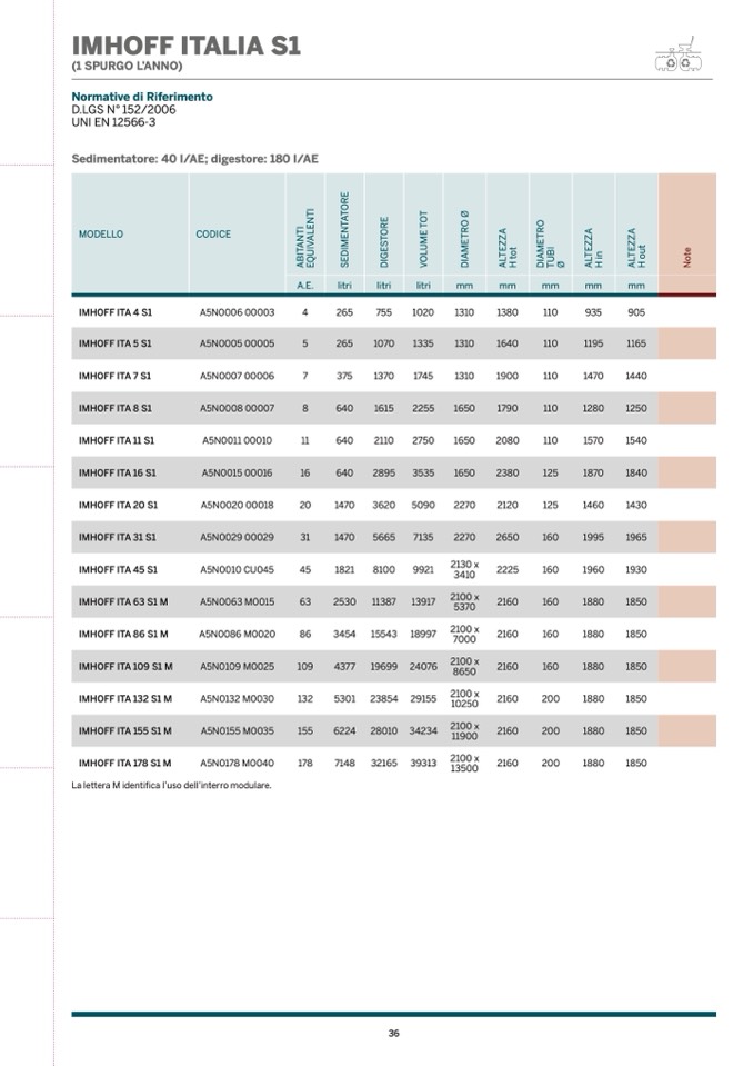 Sedimentatore: 40 l/AE; digestore: 180 l/AE