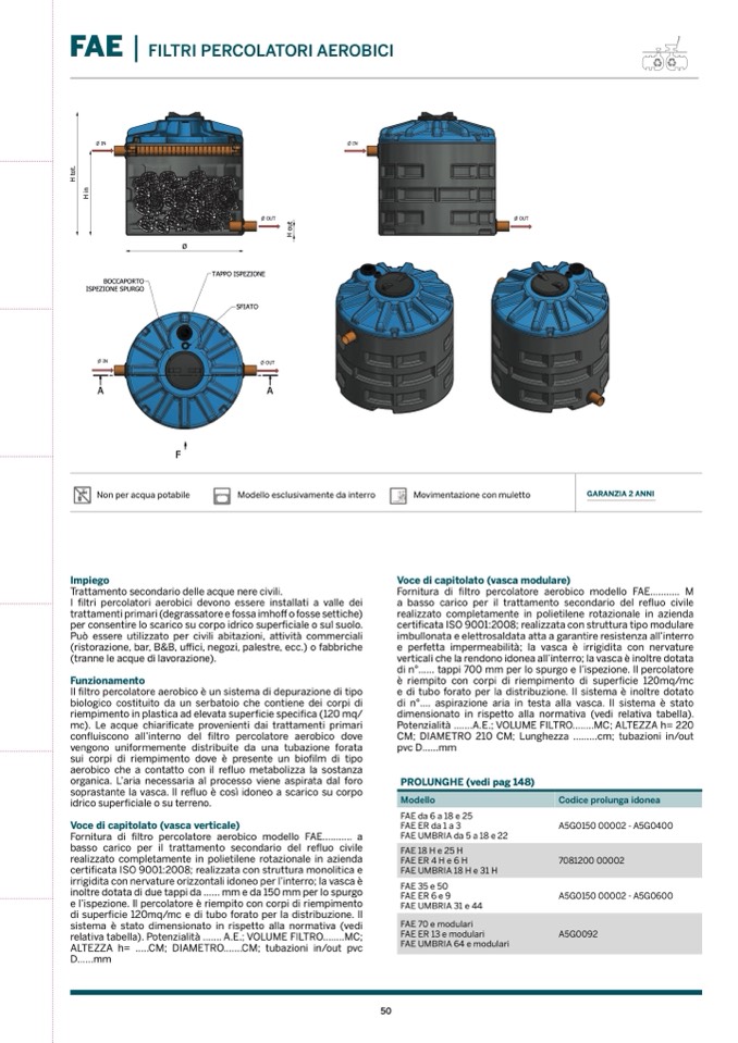 Fornitura di filtro percolatore aerobico modello FAE........... M