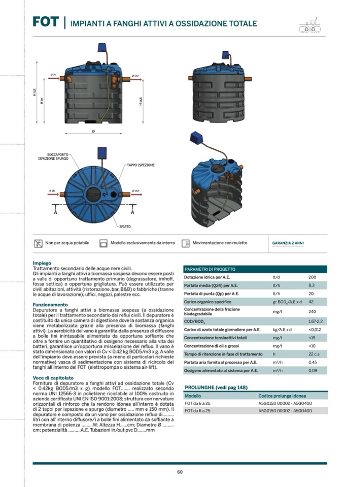< 0.42kg BOD5/m3 x g) modello FOT....... realizzato secondo