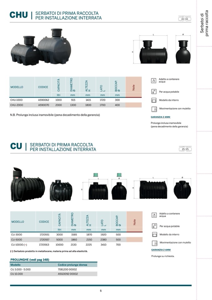 (•) Serbatoio prodotto in metallocene, materia prima ad alta elasticità.