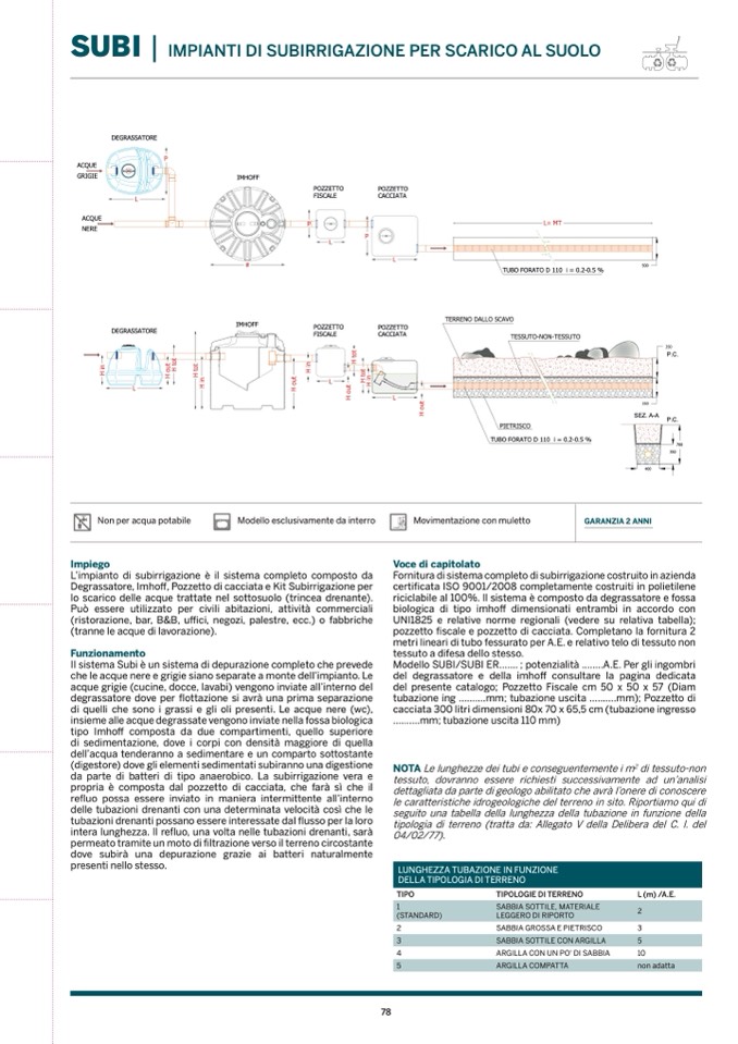 Degrassatore, Imhoff, Pozzetto di cacciata e Kit Subirrigazione per
