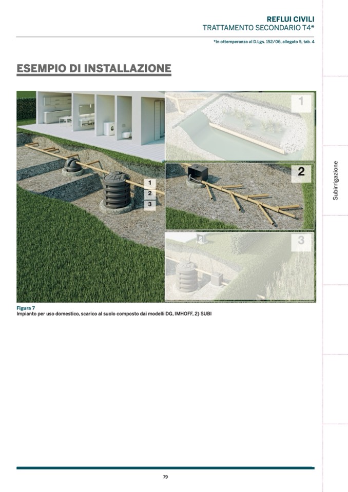 Impianto per uso domestico, scarico al suolo composto dai modelli DG, IMHOFF, 2) SUBI
