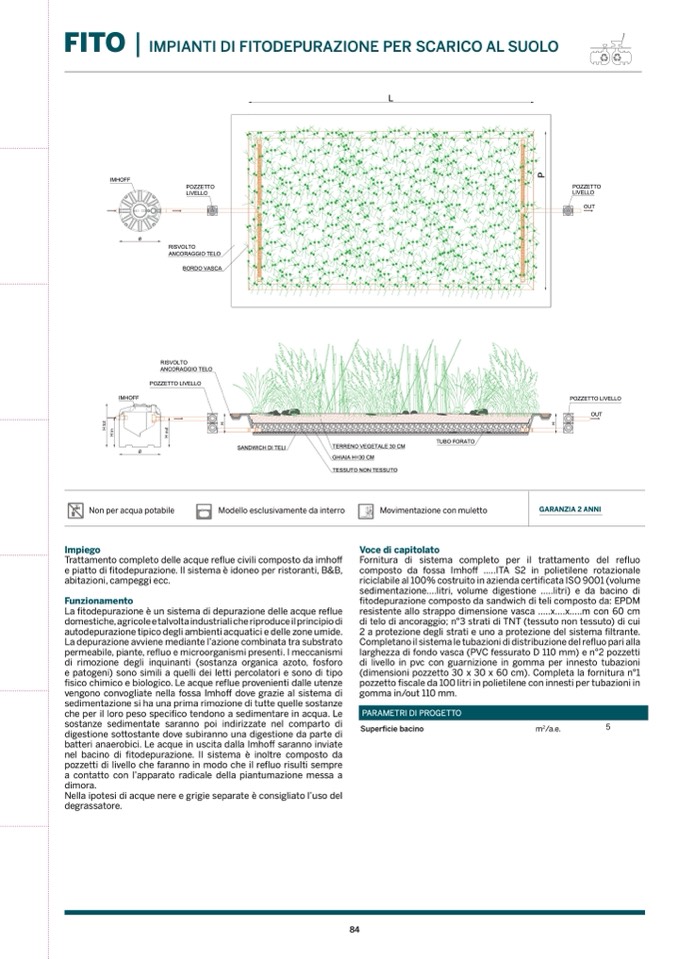 e piatto di fitodepurazione. Il sistema è idoneo per ristoranti, B&B,