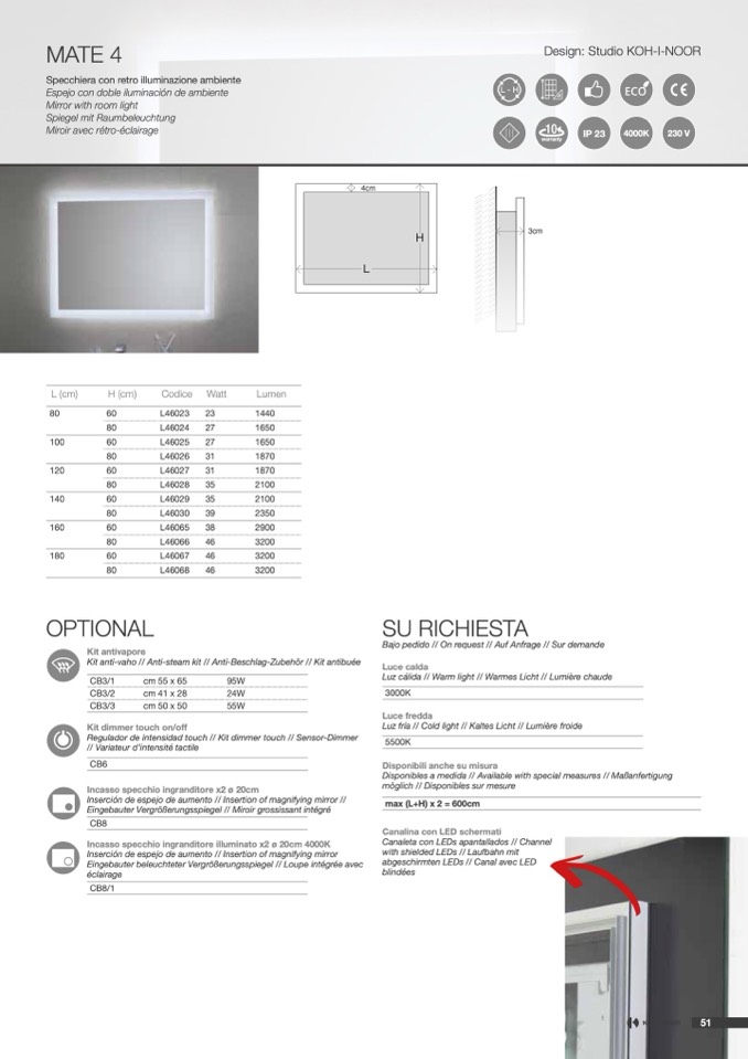 Specchiera con retro illuminazione ambiente
