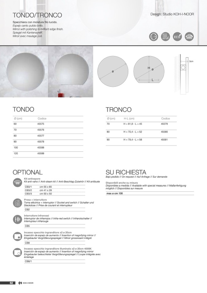 Disponibili anche su misura
