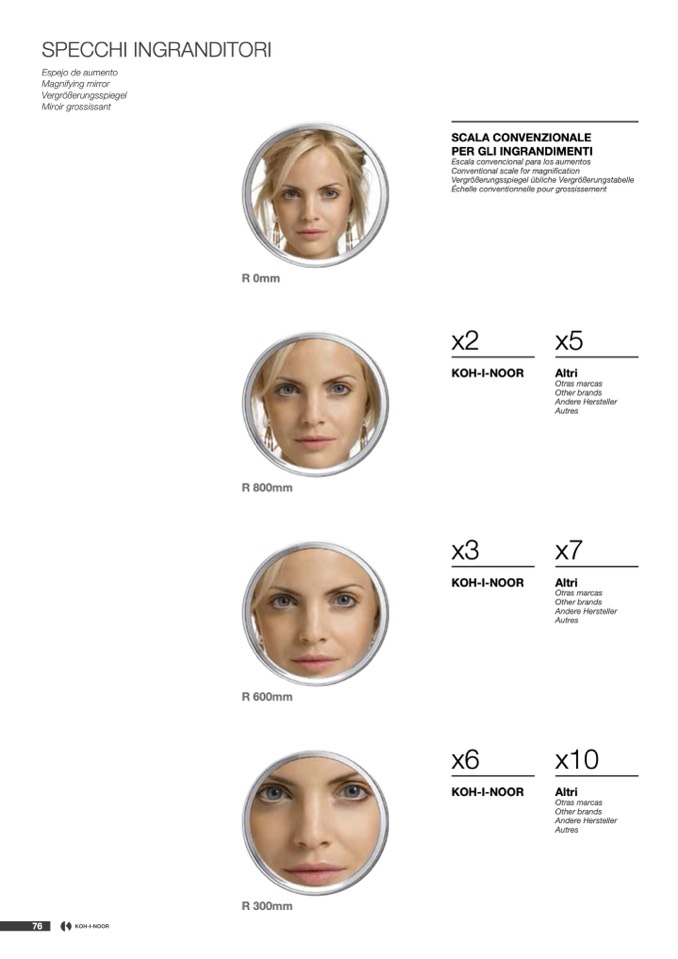 Vergrößerungsspiegel übliche Vergrößerungstabelle