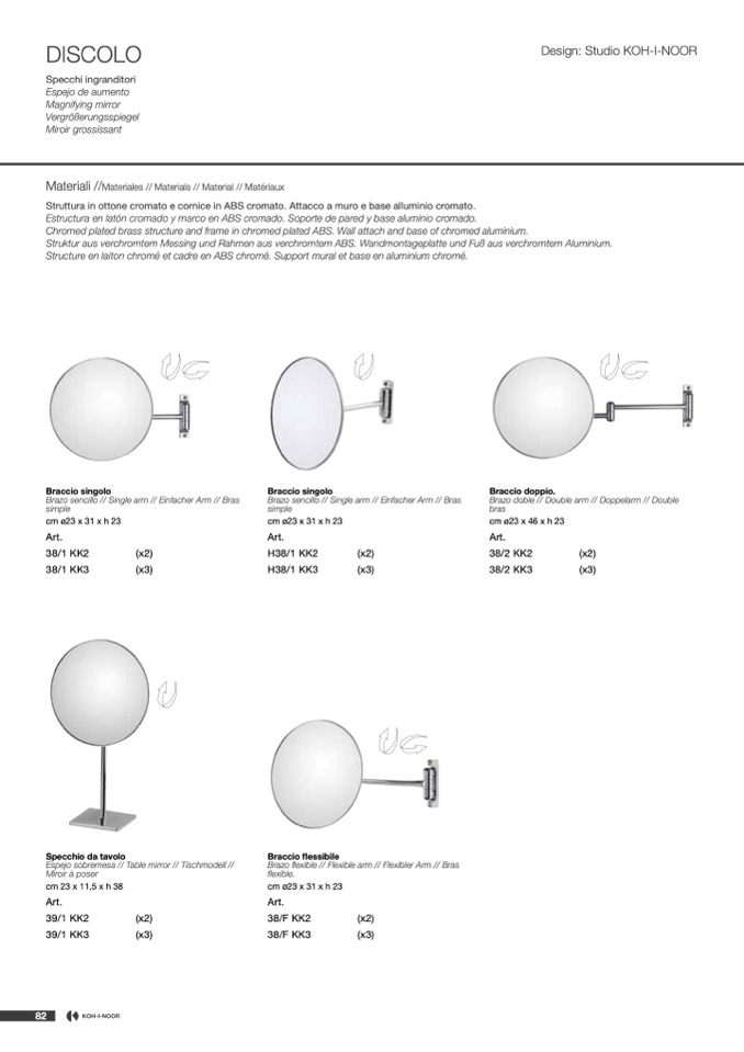 Chromed plated brass structure and frame in chromed plated ABS. Wall attach and base of chromed aluminium.