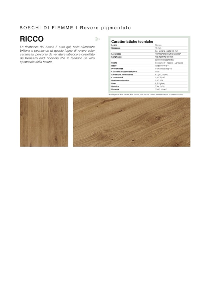 *Multilarghezze: 40% 158 mm, 40% 192 mm, 20% 240 mm. **Retro standard in abete; in rovere su richiesta