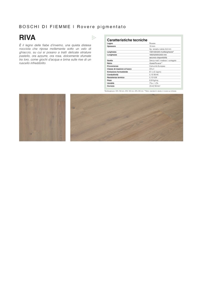 *Multilarghezze: 40% 158 mm, 40% 192 mm, 20% 240 mm. **Retro standard in abete; in rovere su richiesta