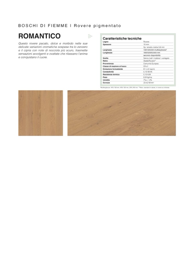 *Multilarghezze: 40% 158 mm, 40% 192 mm, 20% 240 mm. **Retro standard in abete; in rovere su richiesta