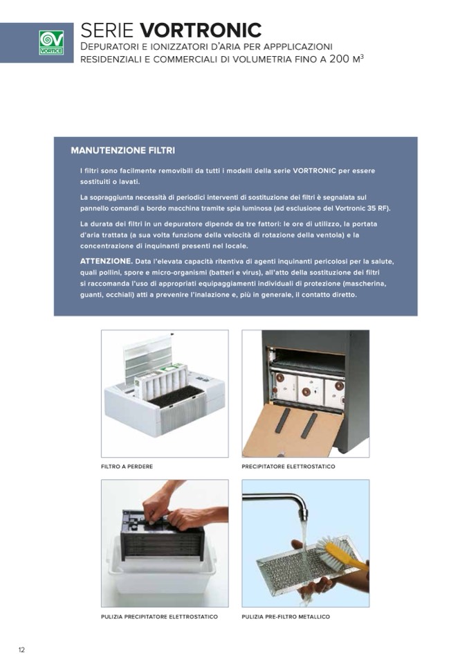 I filtri sono facilmente removibili da tutti i modelli della serie VORTRONIC per essere