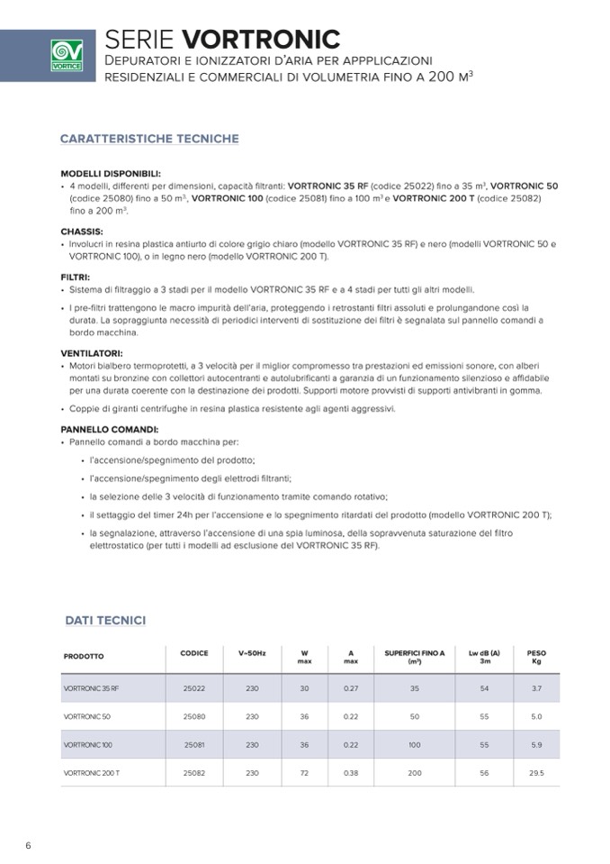 • il settaggio del timer 24h per l’accensione e lo spegnimento ritardati del prodotto (modello VORTRONIC 200 T);