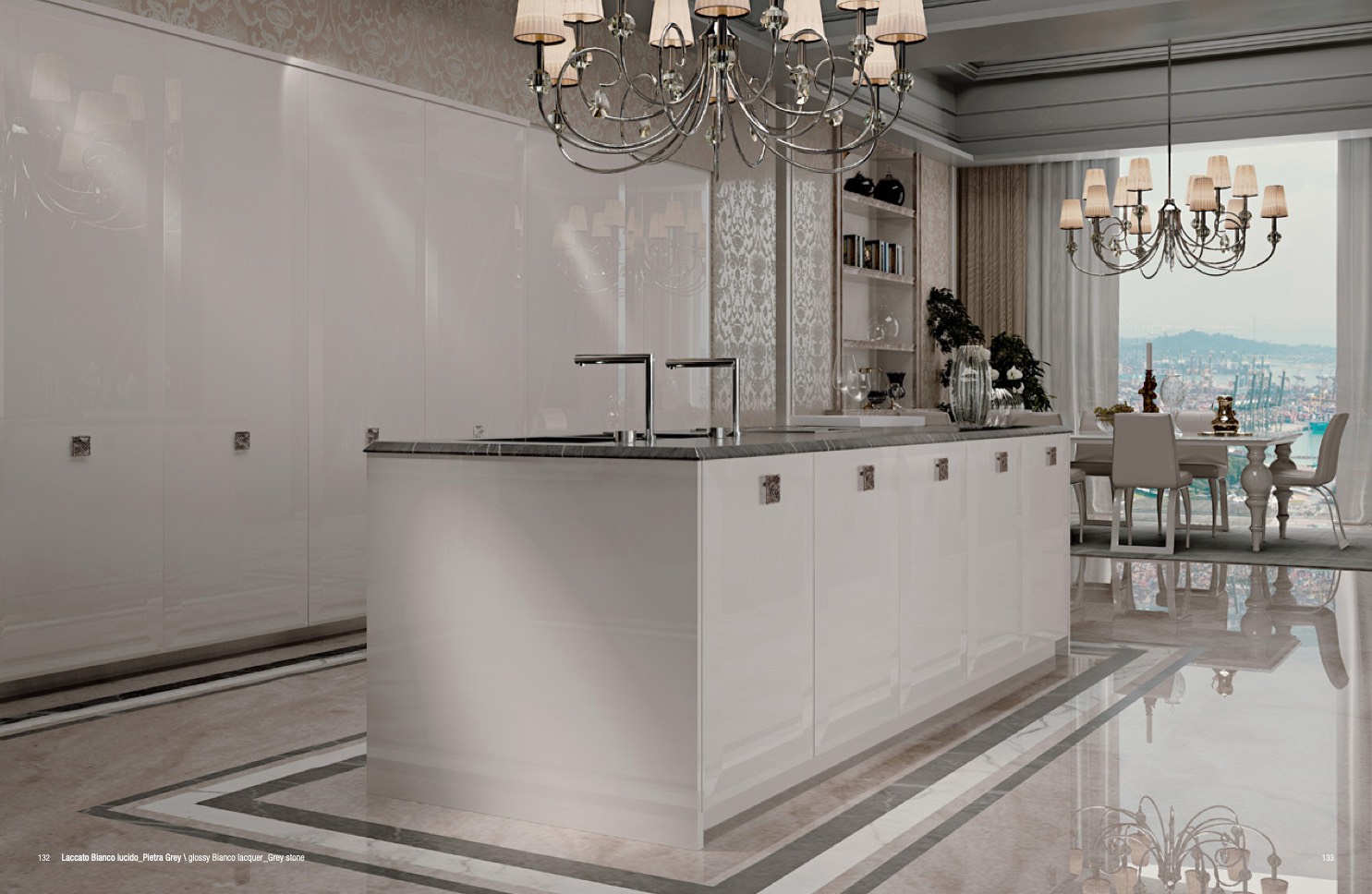 132 Laccato Bianco lucido_Pietra Grey \ glossy Bianco lacquer_Grey stone